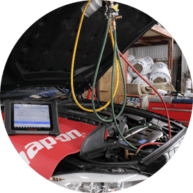 Auto Liebe(オートリーベ)ではカーエアコン修理専門の設備が充実しています。各機能の作動チェックを行ったり、ガス漏れの確認、水圧テストなど徹底した故障探求を行います。